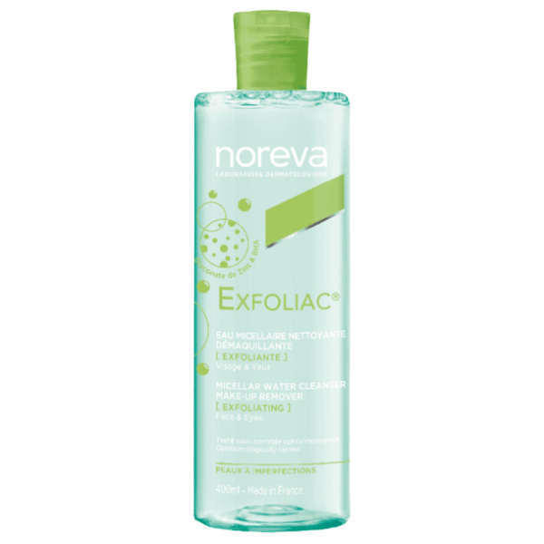 Eau micellaire nettoyante démaquillante exfoliante permet de nettoyer, démaquiller et purifier les peaux à imperfections en douceur.
