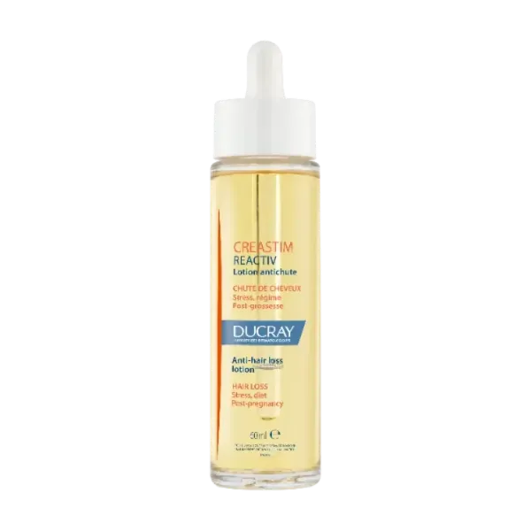 DUCRAY CREASTIM REACTIV est un soin capillaire qui stimule la pousse* et freine la chute. Indiqué en cas de chute de cheveux réactionnelle + Un shampooing traitant qui contribue à ralentir la chute des cheveux offert