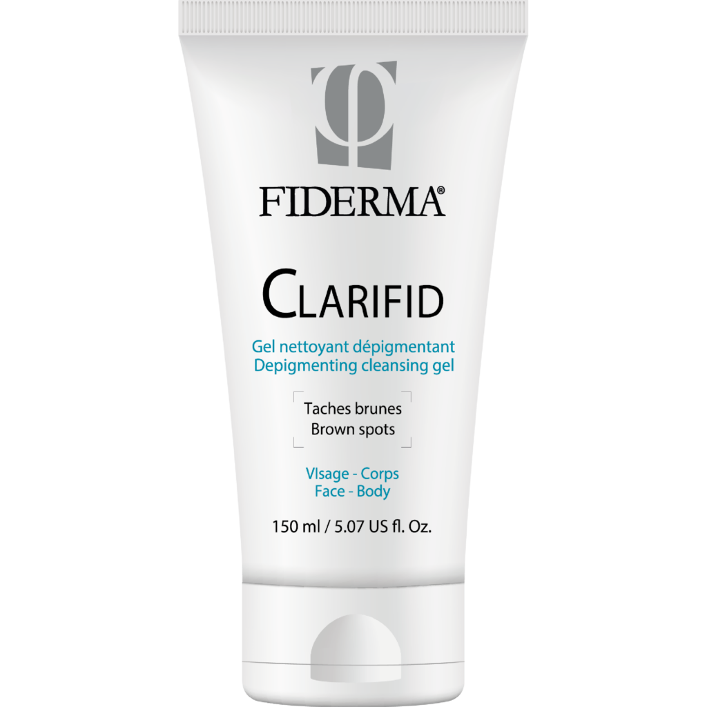 FIDERMA CLARIFID GEL NETT DEPIGMENTANT est un gel nettoyant qui vise à réduire les taches pigmentaires pour une peau plus lumineuse.
