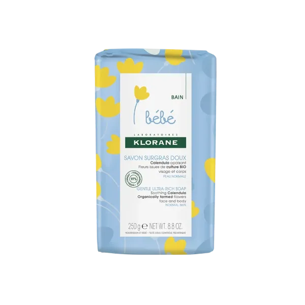 Naturellement doux et nourrissant, le Savon surgras au Calendula apaisant nettoie, apaise et protège le film hydrolipidique lors du bain.