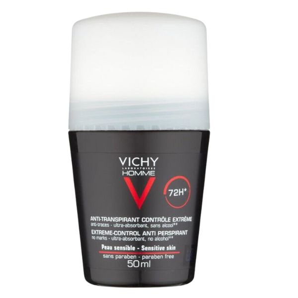 Déodorant anti-transpirant 72 H contrôle extrême pour hommes. Anti-transpirant 72 heures. Pas de traces, ultra-absorbant. Hypoallergénique, Sans alcool, Testé sous contrôle dermatologique.