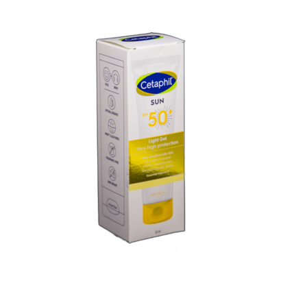 CETAPHIL ECRAN GEL SPF50+ PG/SENS 50ML est un écran solaire en gel haute protection spécialement conçu pour les peaux sensibles.